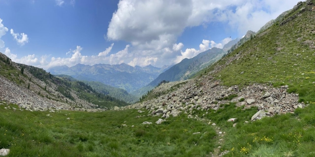 Man geht an den stimmungsvollen Seen vom Holletal vorbei ( Laghi Val dell’Inferno ) und steigt bis zum Paß