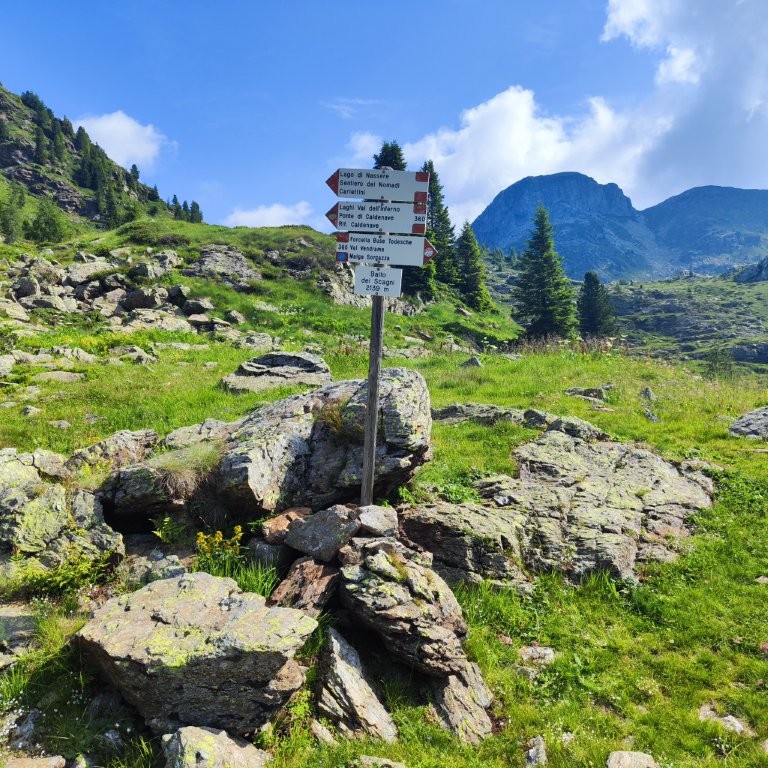 steigt man einen Pfad entlang bis zur Abzweigung Socede Paß in 2516 Meter Höhe herunter. Hier kann man einige Überreste eines Schützengrabens aus alter Zeit sehen. Von hier durch granitische Erhebungen erreicht man in ca. 15 Minuten das Rifugio Cima d´Asta.