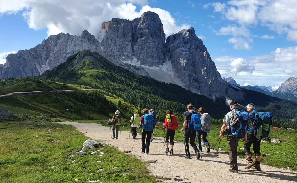 majestätischen Pragser Dolomiten. Bald erwartet uns der erste Aufstieg dieser wunderbaren Tour. Wir