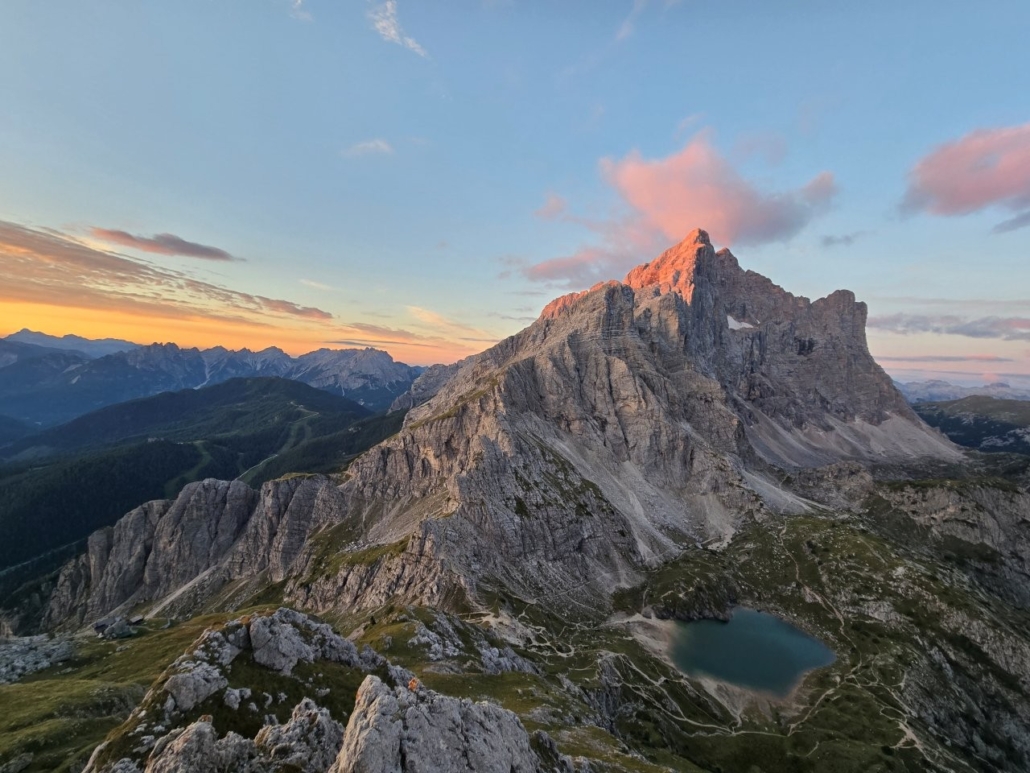 Unsere Tour beginnt mit einem gemütlichen Aufbruch in Richtung Pederü, wo wir eine kurze Pause einlegen und die umliegende Bergwelt auf uns wirken lassen. Von dort aus führt uns der Weg weiter entlang rauschender Bäche und kleiner, kristallklarer Seen – ein wahrer Genuss für die Sinne.