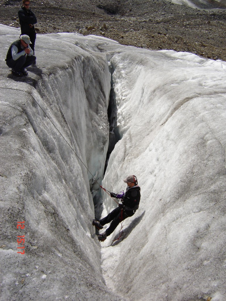 - Voraussetzung: die Teilnahme an einem Gletscherkurs mit Inhalt: Sicheres Gehen mit Steigeisen am Gletscher, Pickeltechnik, Spaltenrettung