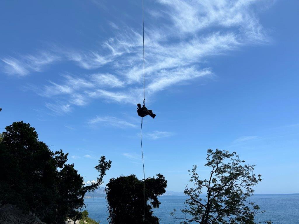 Der letzte Tag entlang der Küste wartet nochmal mit spannenden Kletter- und Abseilstellen auf uns. An unserem Endpunkt der Cala Sisine, können wir uns nochmal im kühlen Nass erfrischen. Im Anschluss wartet ein letztes Highlight auf uns, eine spektakuläre Bootsfahrt entlang des Golfs von Orosei.